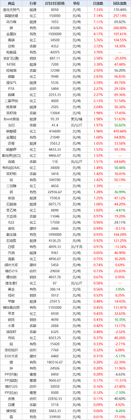油價方面,俄烏緊張局勢引發原油市場供給擔憂,國際油價在周一顯著上漲,紐約原油期貨漲幅為2.90%,報92.83美元/桶;布倫特原油期貨價格漲幅為3.90%,報97.19美元/桶,為2014年9月,也就是7年多來首次。國際金價當天變動不大。