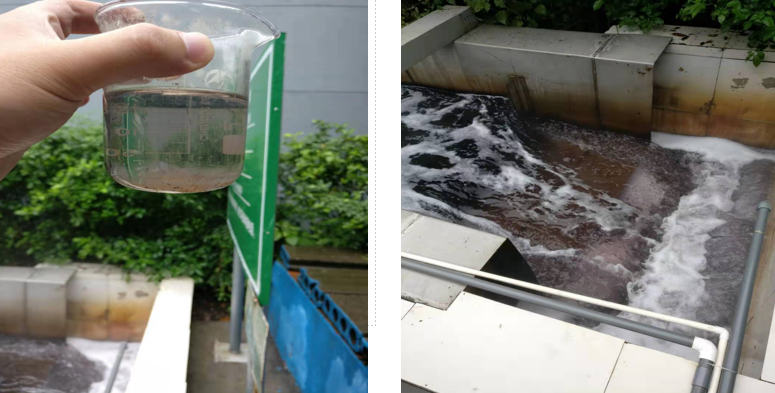客戶是蘇州某大型染廠,原水色度高,污水顏色呈現黑色,對方現有工藝:原水→收集池→冷卻塔→生化→二沉→混凝池→外排。混凝池主要加藥為聚鐵和pam,對方現在主要問題水量太大,生化處理不及時,脫色不完全。