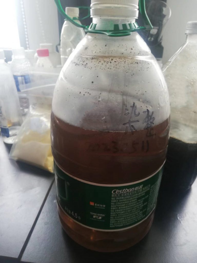 2023.5.11收到客戶公司紡織染整水樣:水質渾濁且有不明懸浮物,偏淡橙色