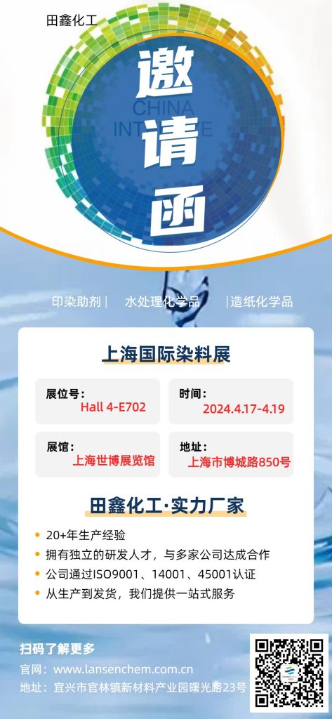 田鑫化工已報名參加第二十三屆上海國際染料紡織化學品展覽會!在這里誠摯邀請您參觀本次展會,田鑫化工展位號【4號館-E702】!