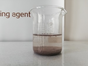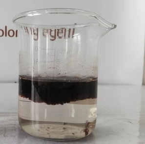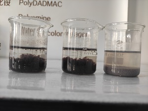 左一為客戶自己添加藥劑試驗的效果圖。 圖二是加入我司脫色劑后的絮凝效果圖。